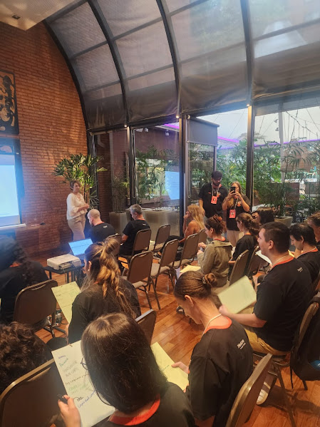 Vero fue la única speaker invitada. En 60 minutos facilitó una experiencia diseñada para generar un cambio concreto de mentalidad: pasar de ejecutar tareas a hacerse dueño del resultado. A través de dinámicas participativas, reflexión guiada y una charla cargada de motivación y herramientas para que pusieran en práctica inmediatamente, cada miembro del equipo reconoció su impacto real dentro del sistema y asumió un compromiso concreto para llevar al día siguiente.